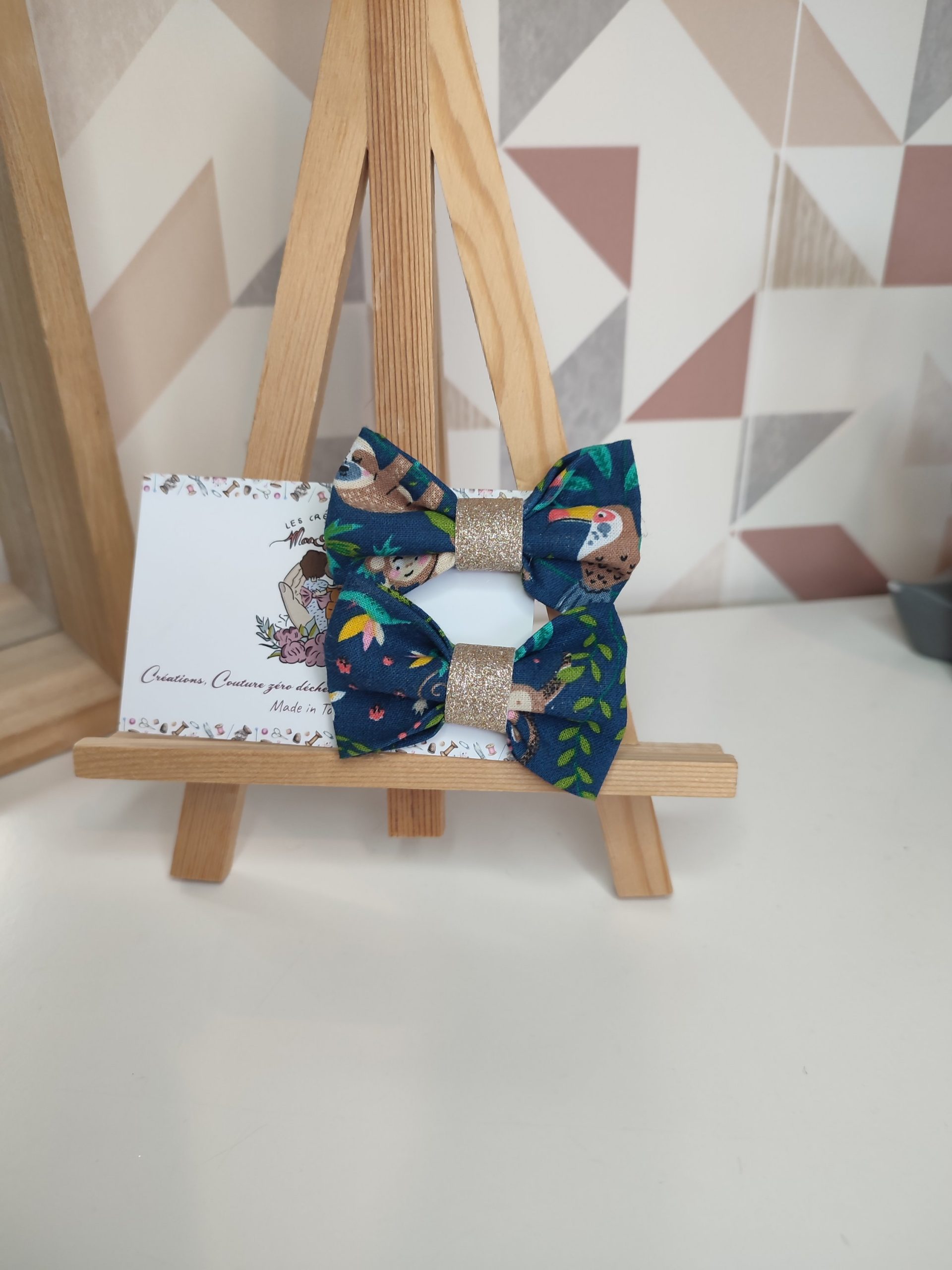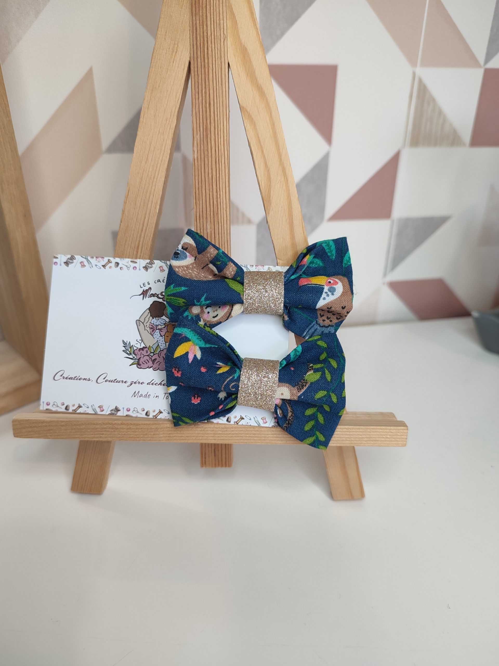 - Barrettes en tissu coton imprimé animaux, fabriquée à la main.