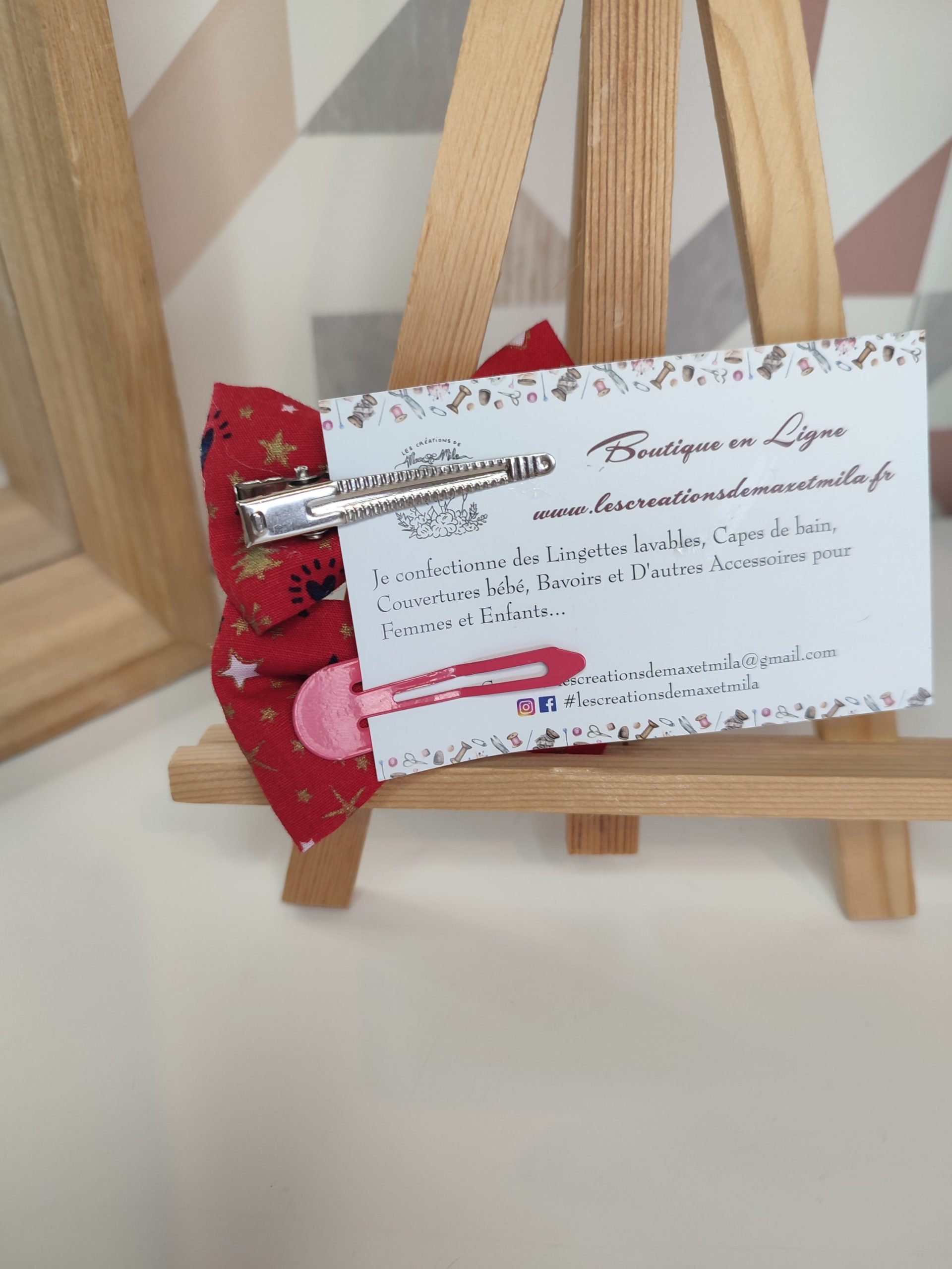 - Barrettes en tissu coton imprimé de fête, fabriquée à la main.