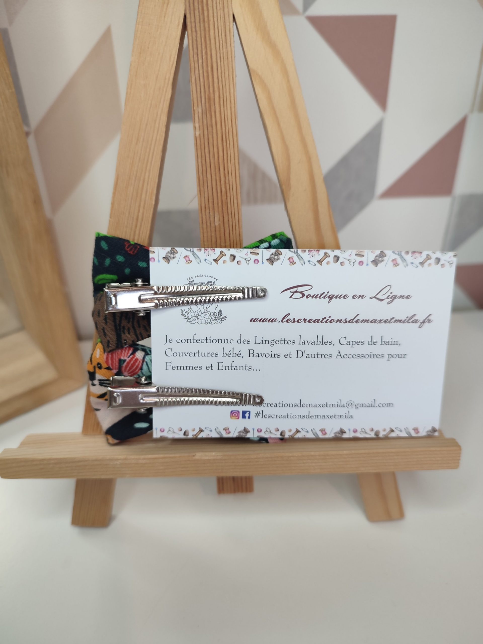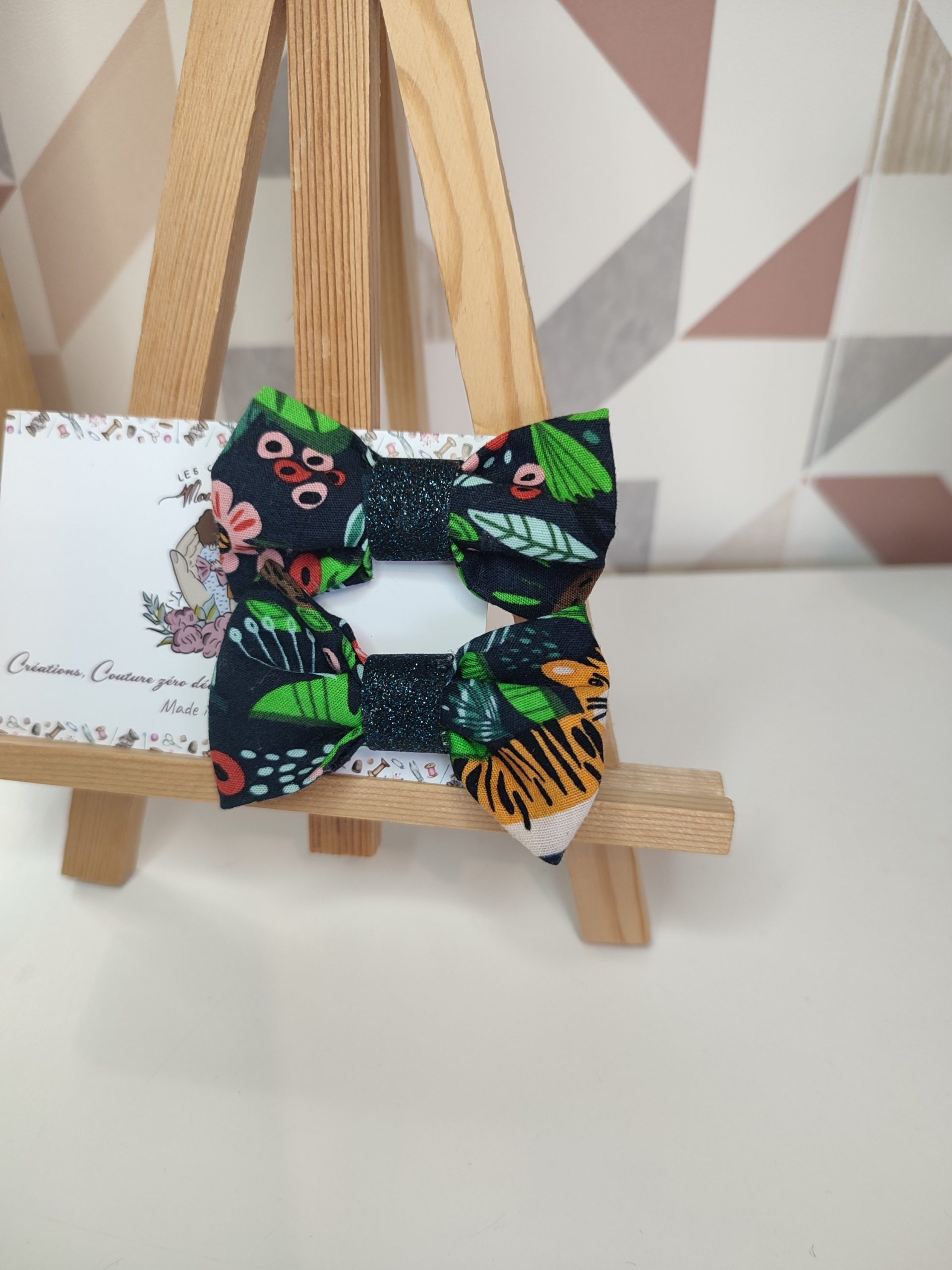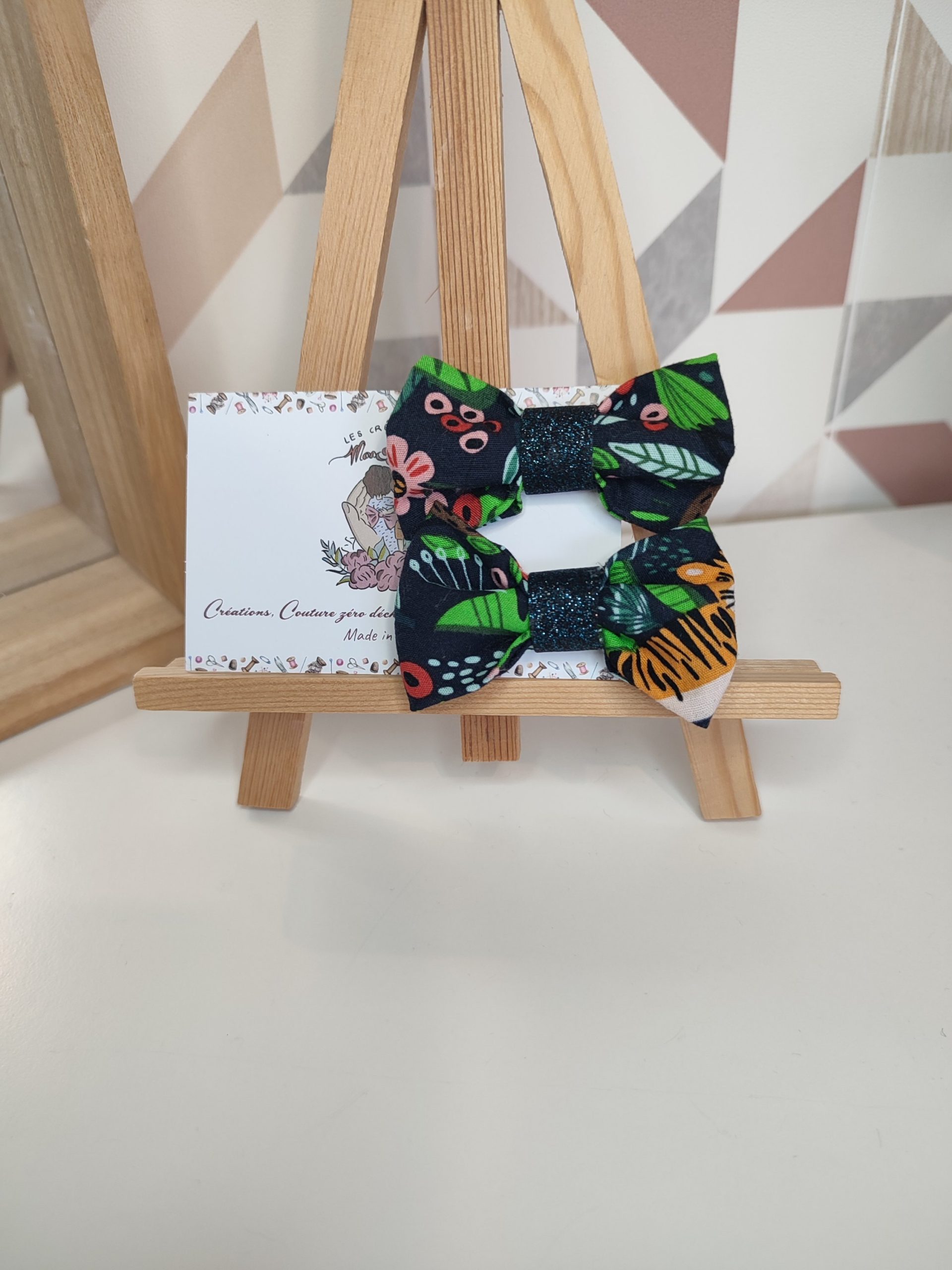 - Barrettes en tissu coton imprimé animaux, fabriquée à la main.