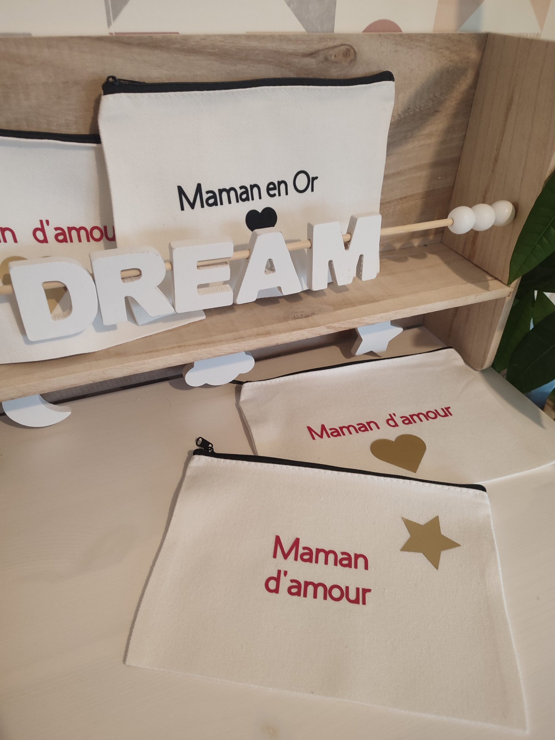 ⭐ Petite pochette ou trousse de toilette ou de rangement avec un flocage personnalisé avec le prénom ou l’intitulé de votre choix.