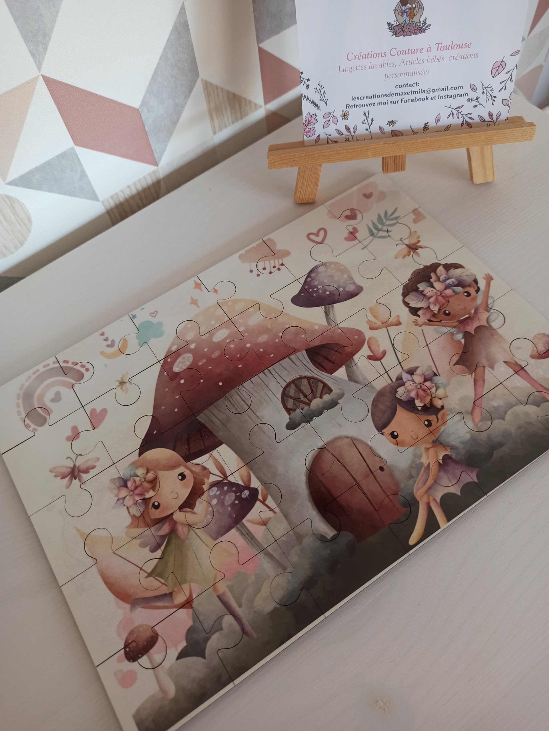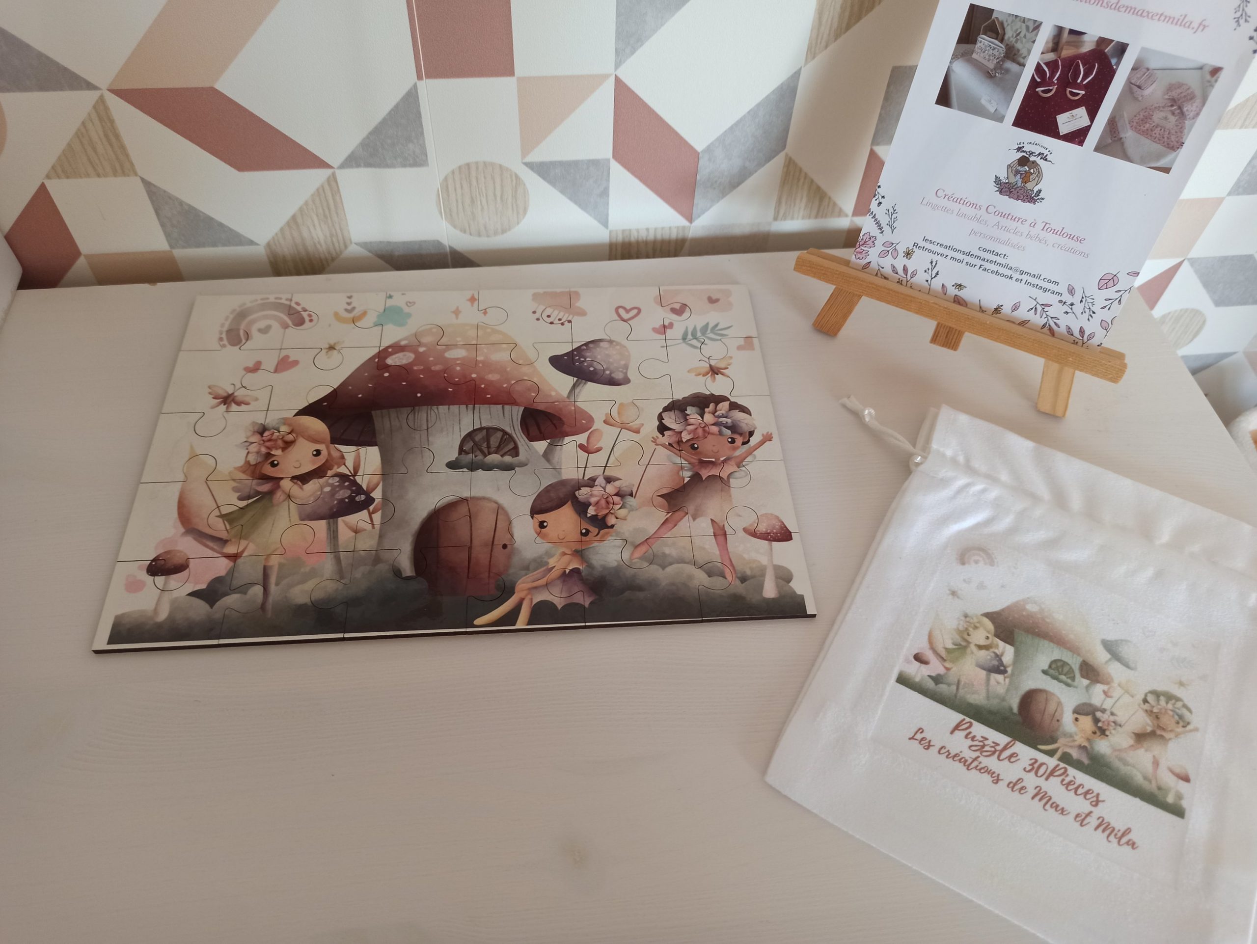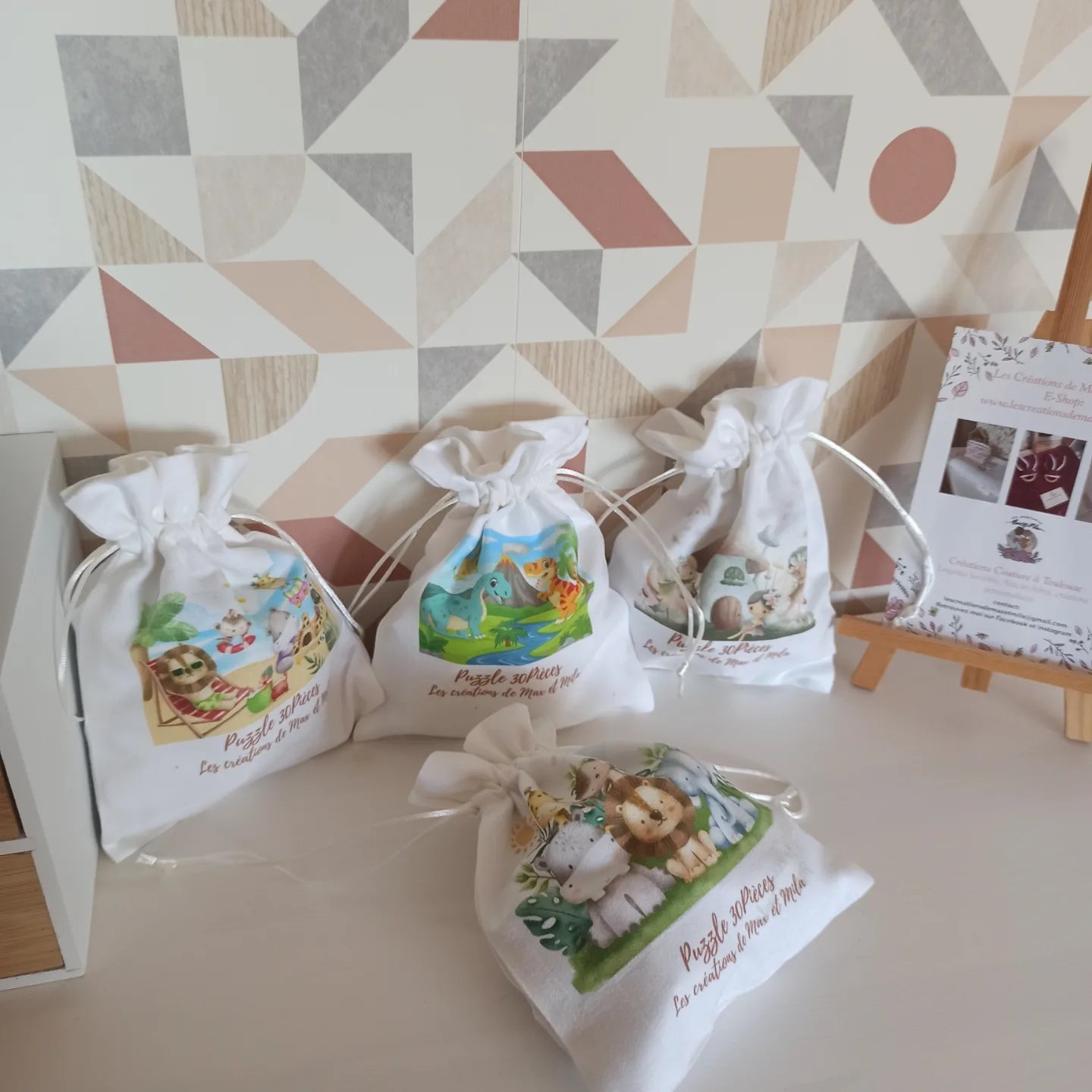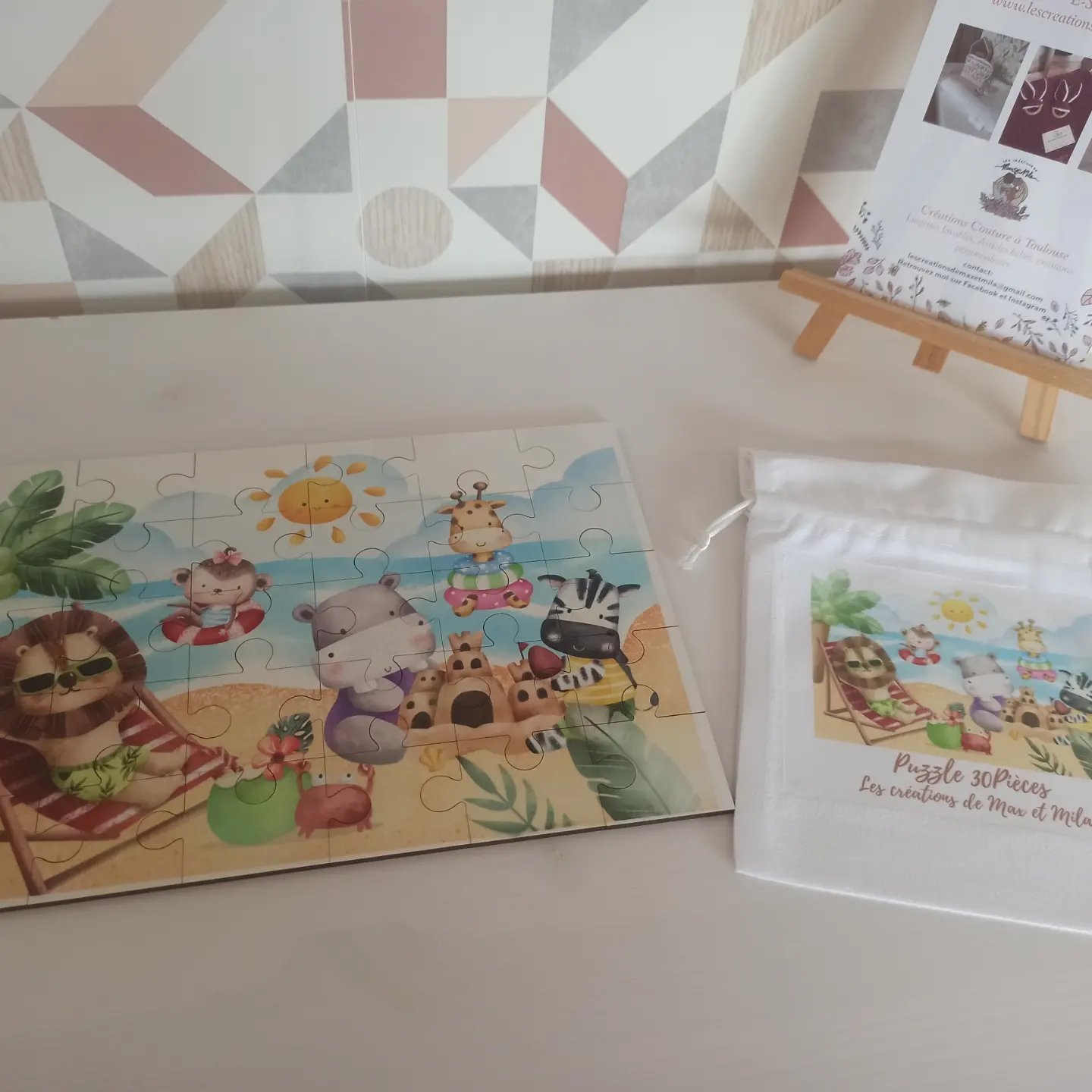 Ces jolis puzzles en bois sont unique car le design est mis en place par moi même dans mon petit atelier multitâches!  Ils feront un cadeau original adaptés aux plus jeunes enfants afin d’exercer leur motricité fine au quotidien. Avec leur petit pochon assortis ils seront également facile a transporter et à ranger,  parole de Maman ! Et toujours…