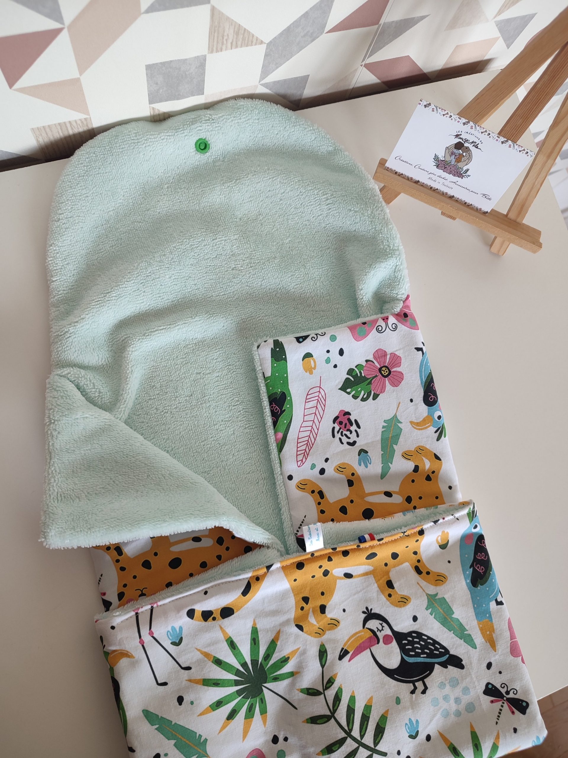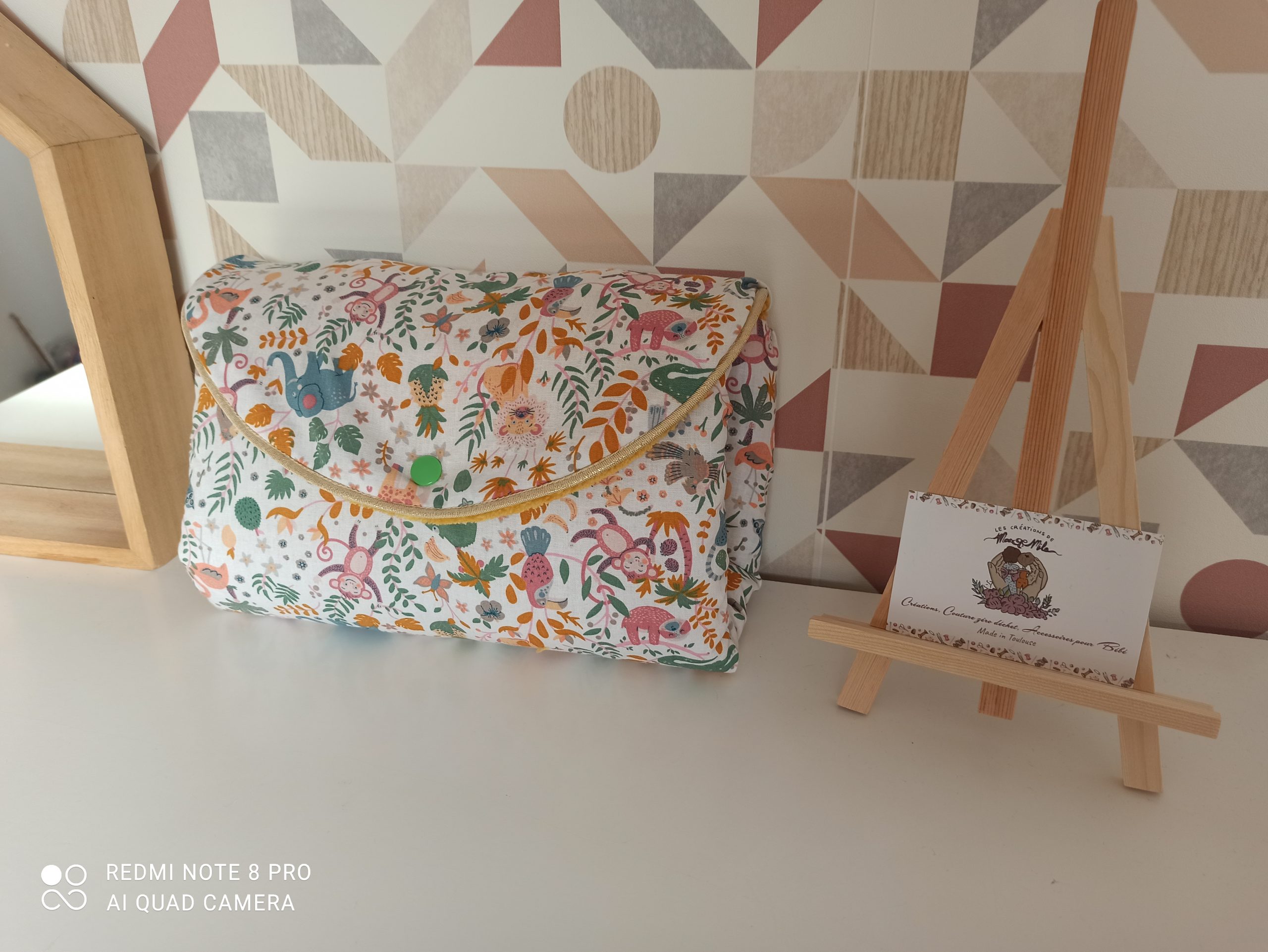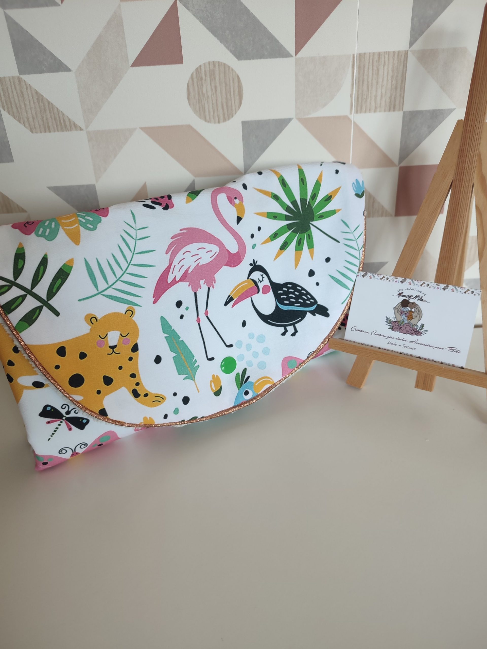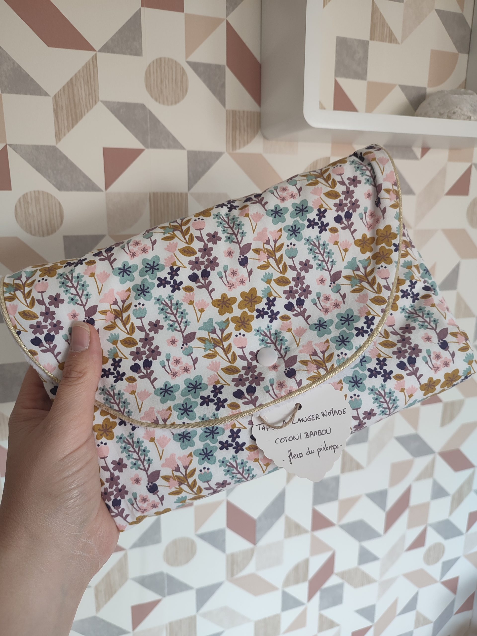 • Tapis à langer nomade fabriqué en tissu coton et éponge de bambou velours, il replis en forme de pochette a l’allure chic et pratique a ranger dans le sac a langer