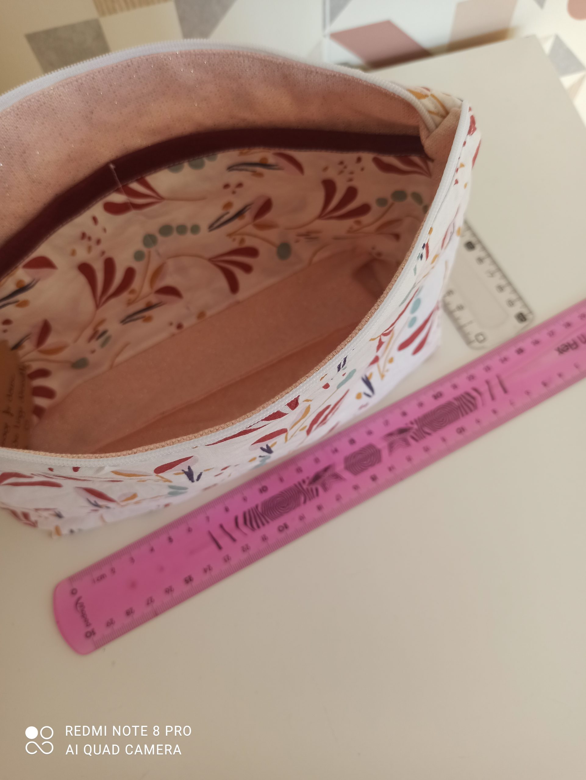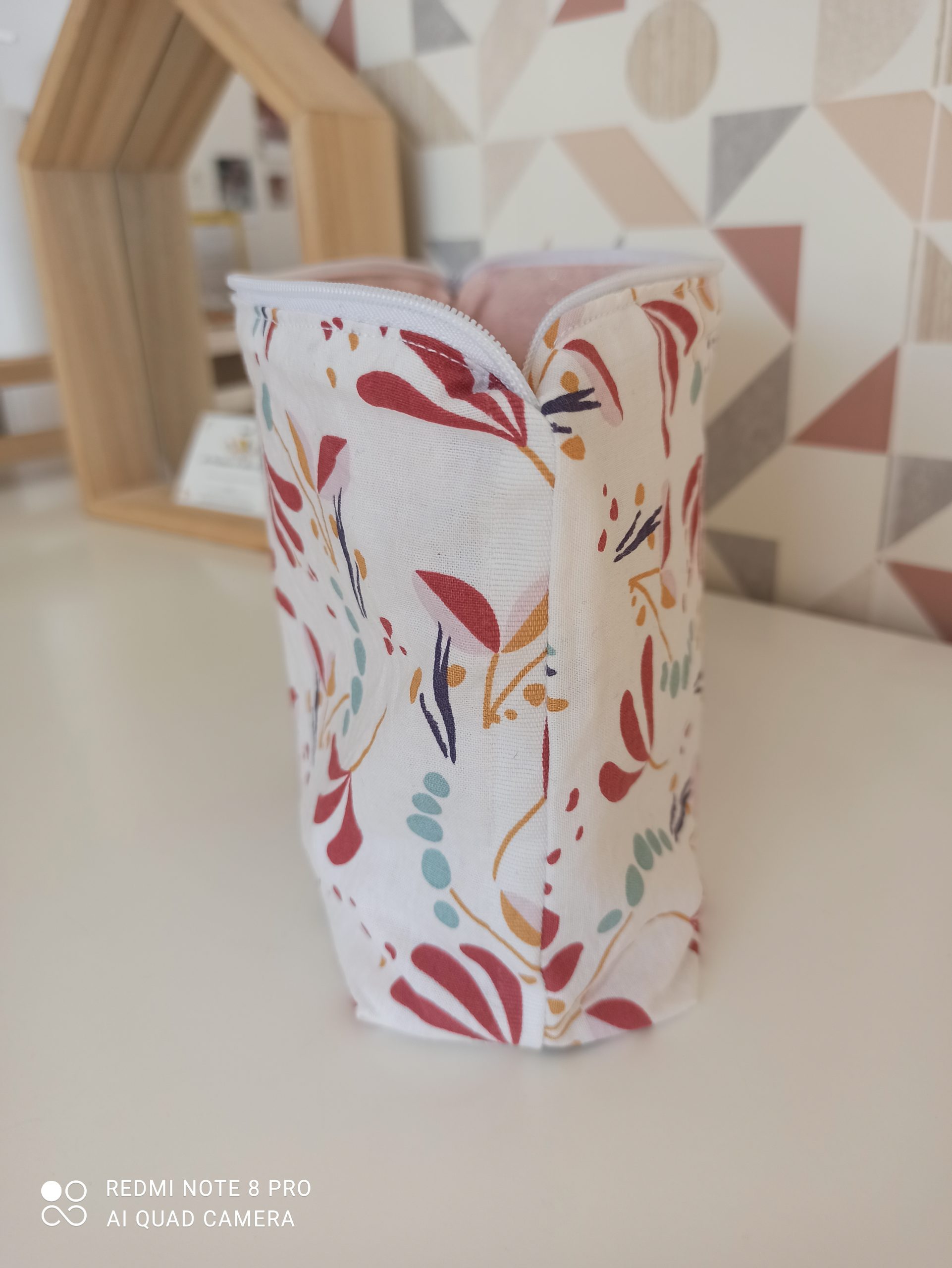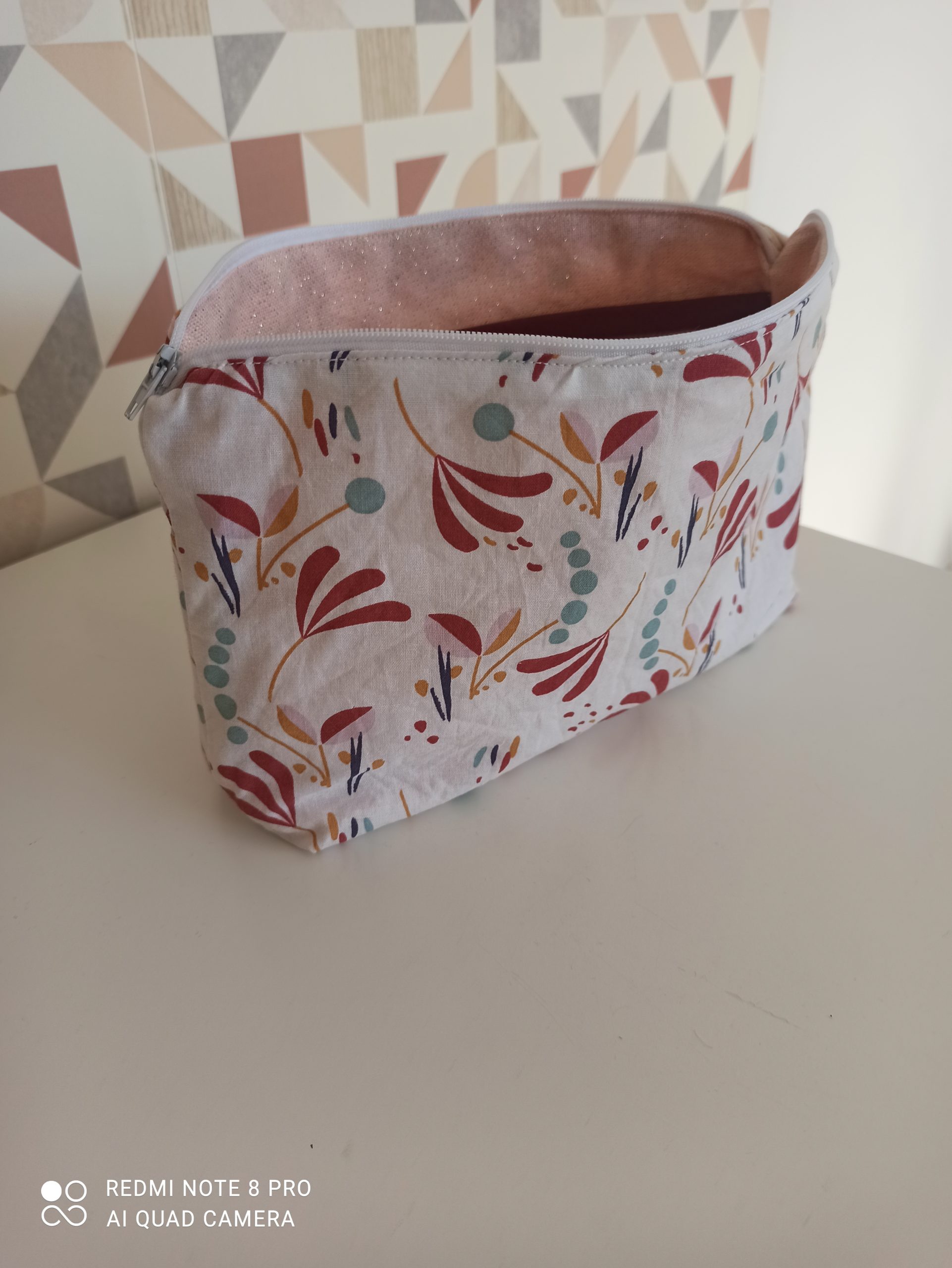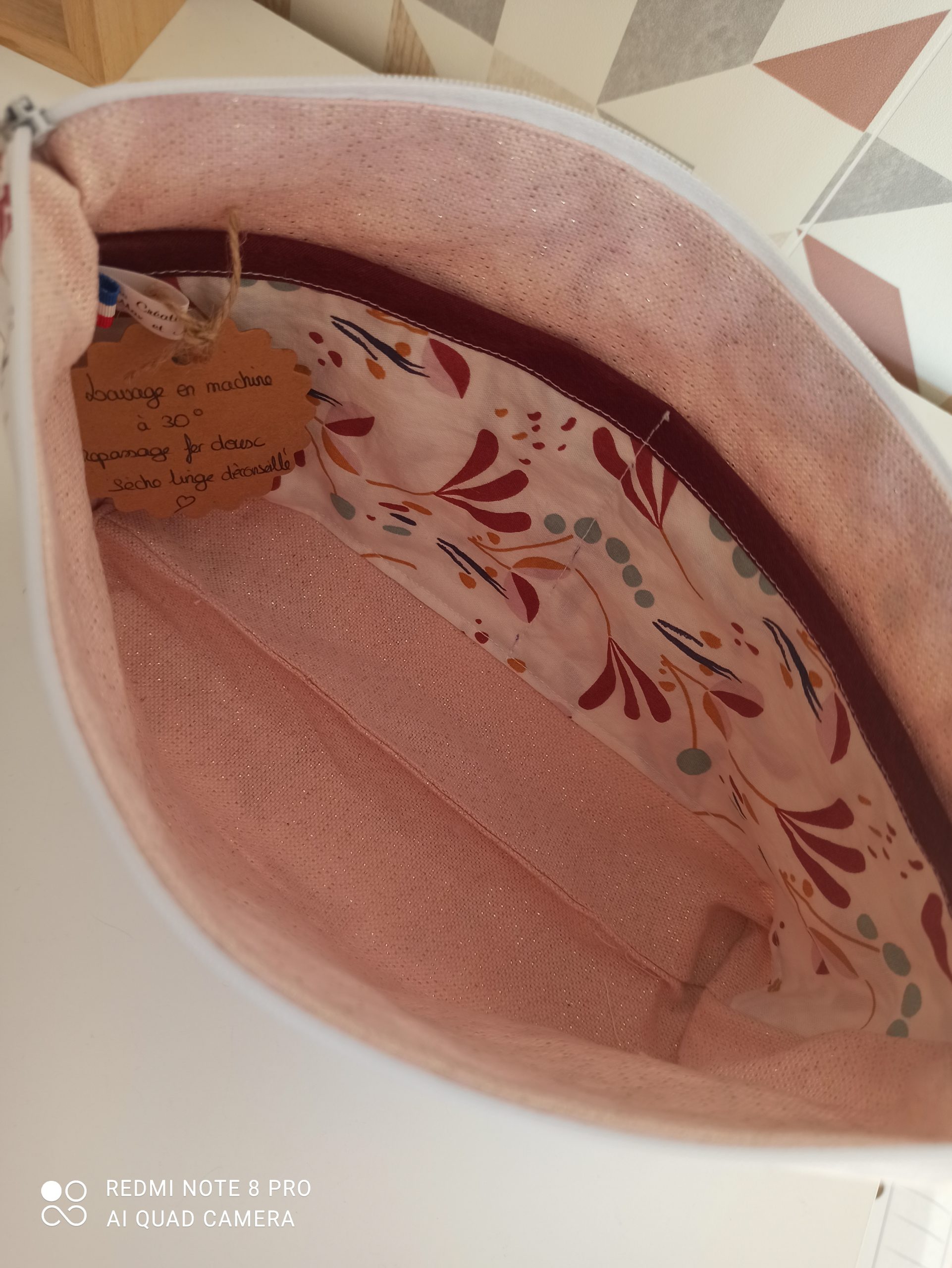 - Trousse de rangement en tissu coton 100% coton et tissu lurex rose à l’intérieur