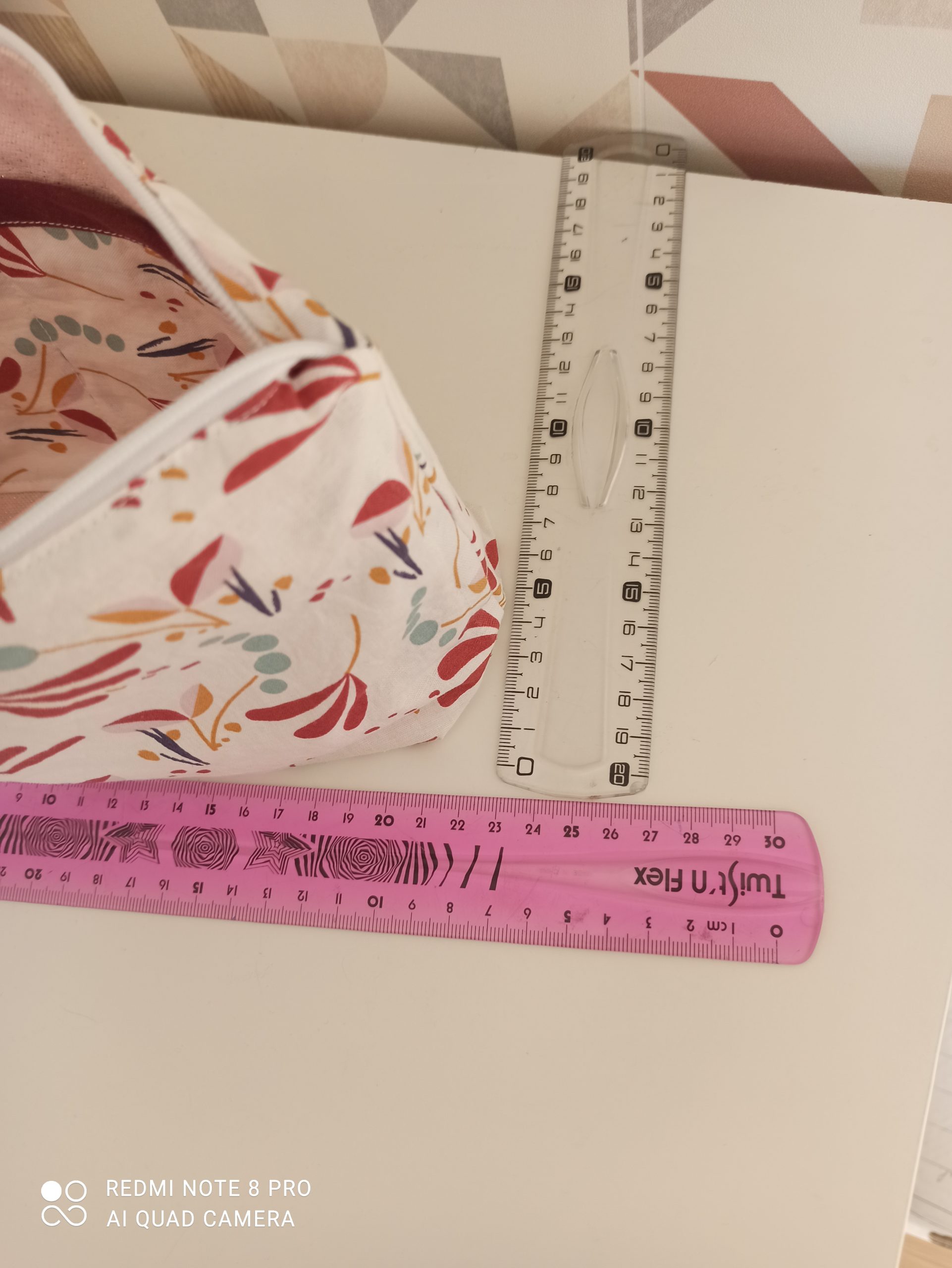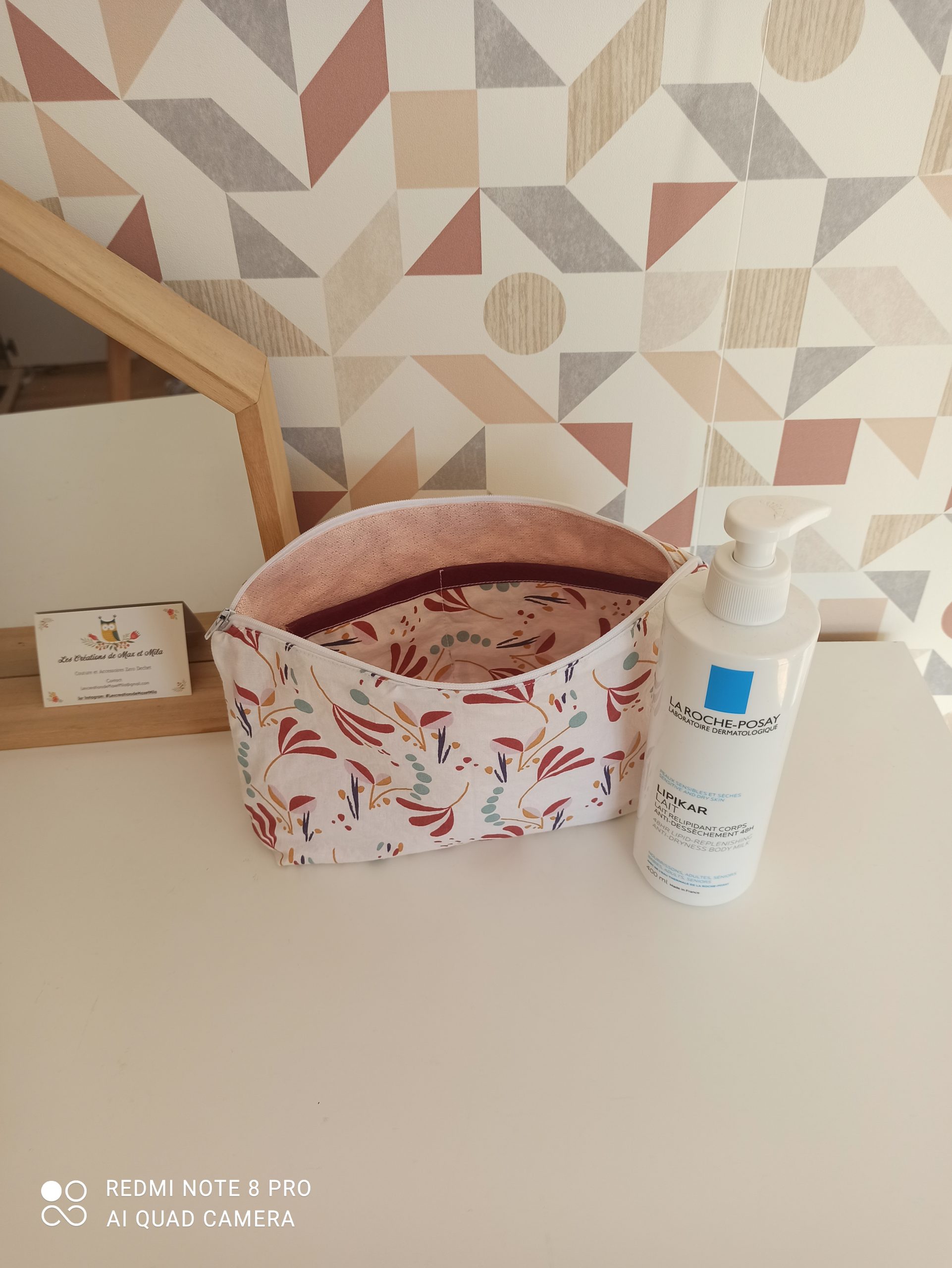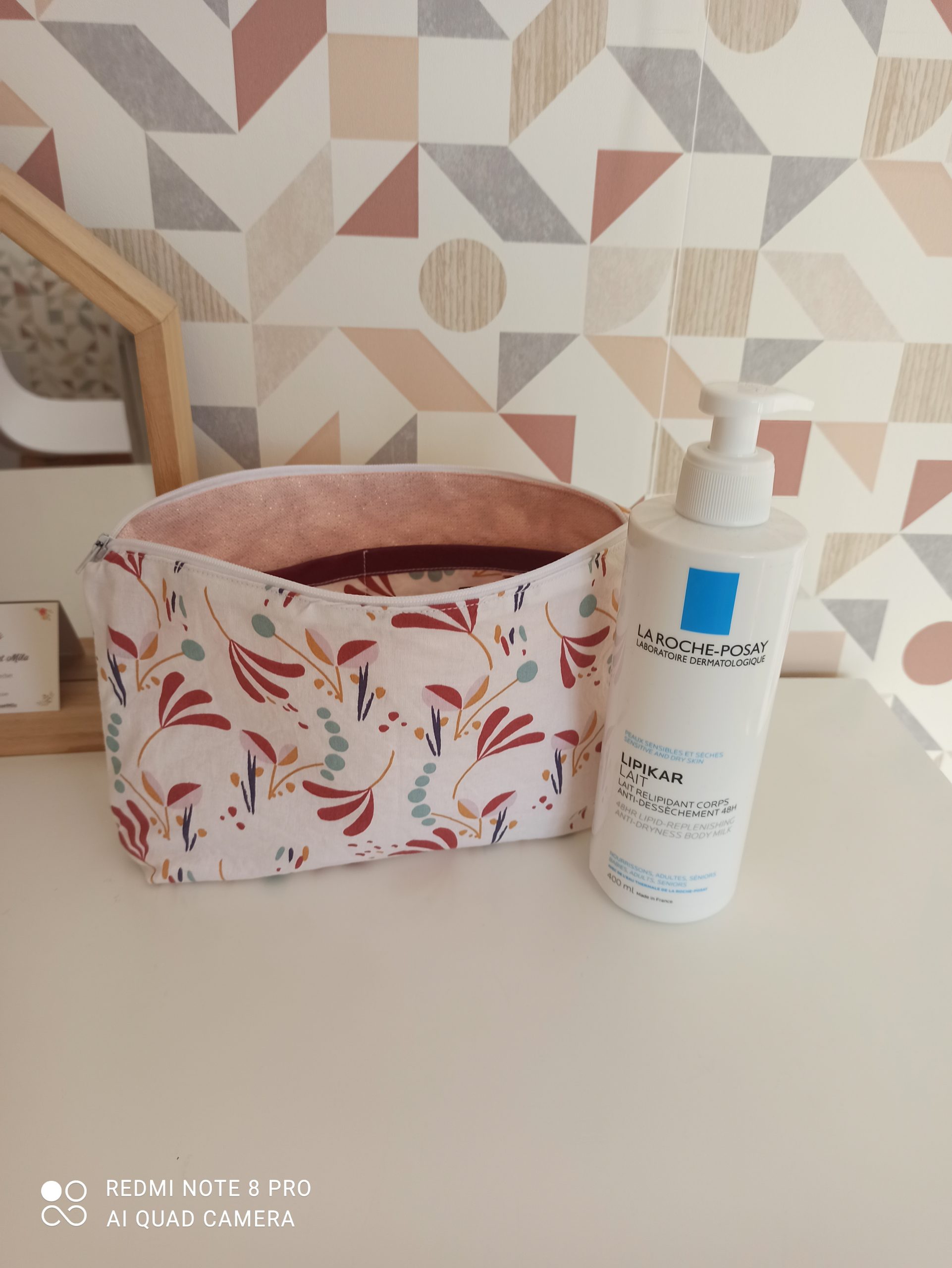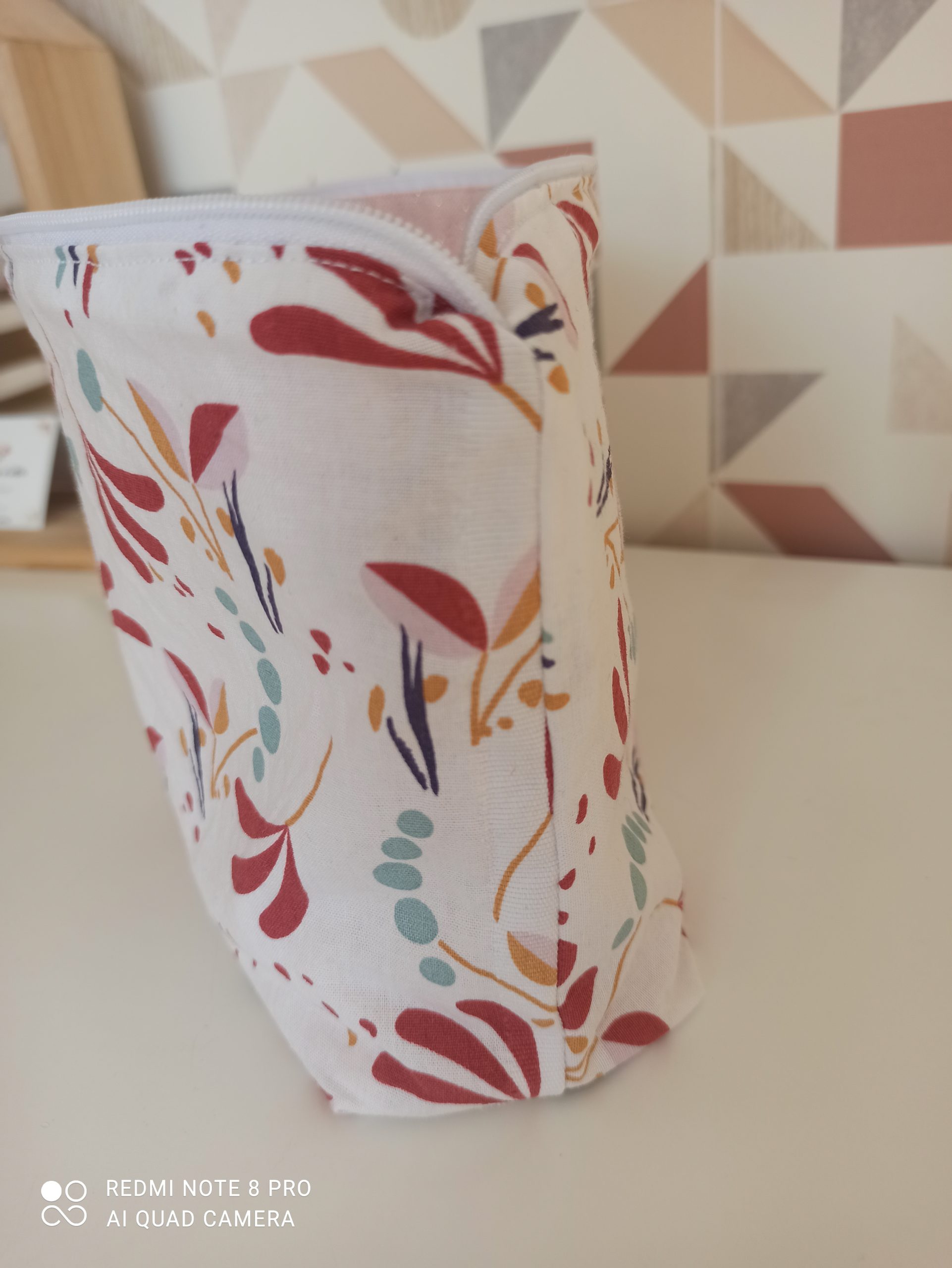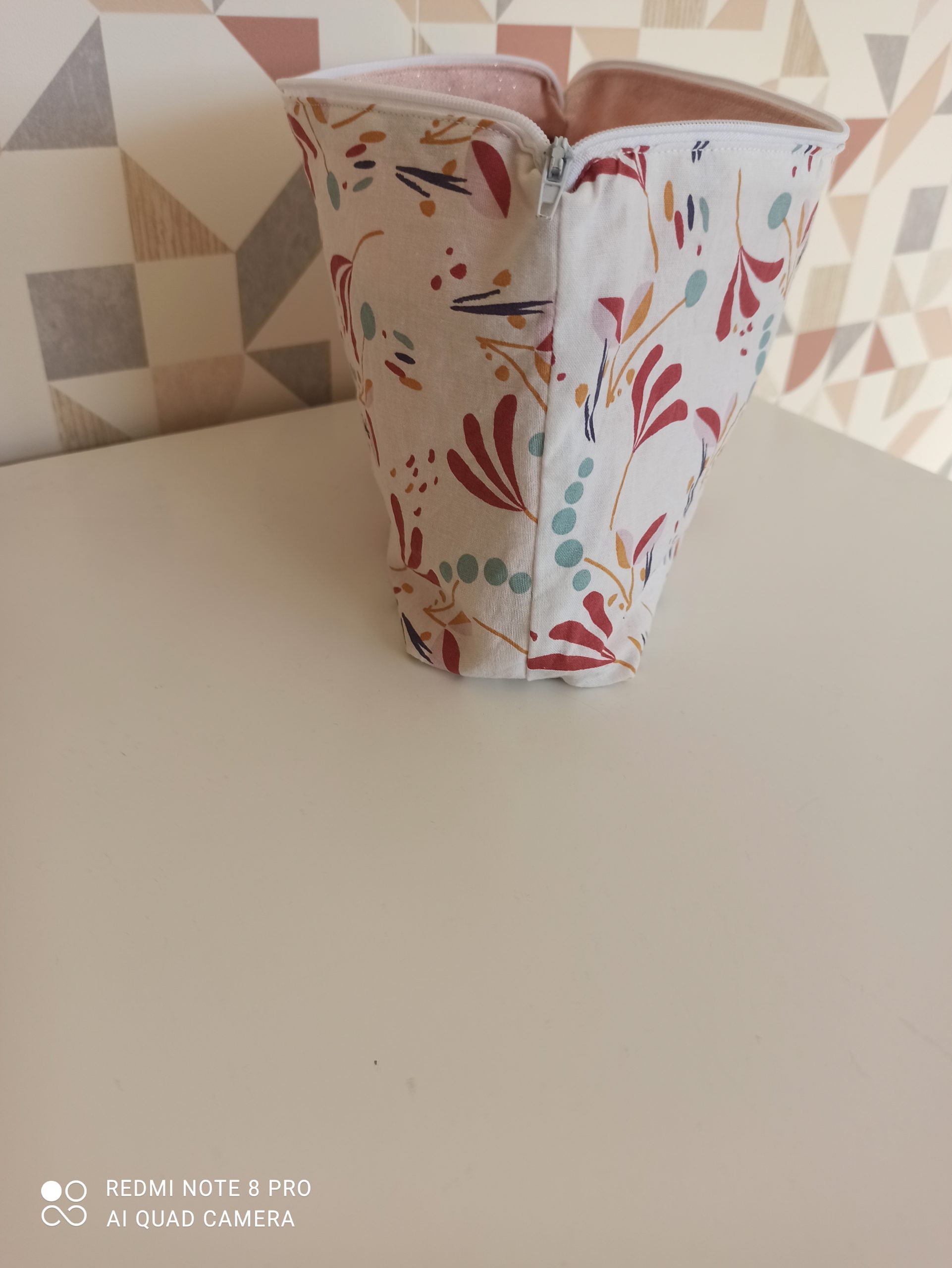 - Trousse de rangement en tissu coton 100% coton et tissu lurex rose à l’intérieur